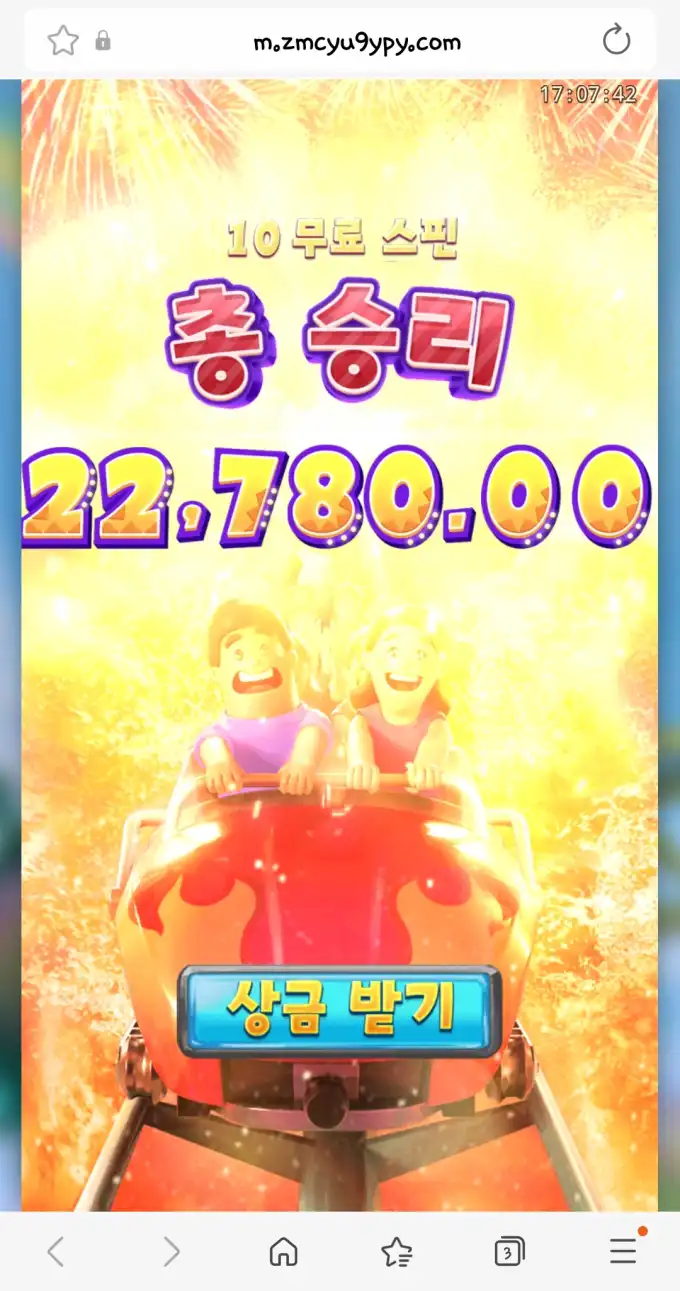 롤러코스터 실제 당첨내역 스크린샷 (당첨금 22780.00)